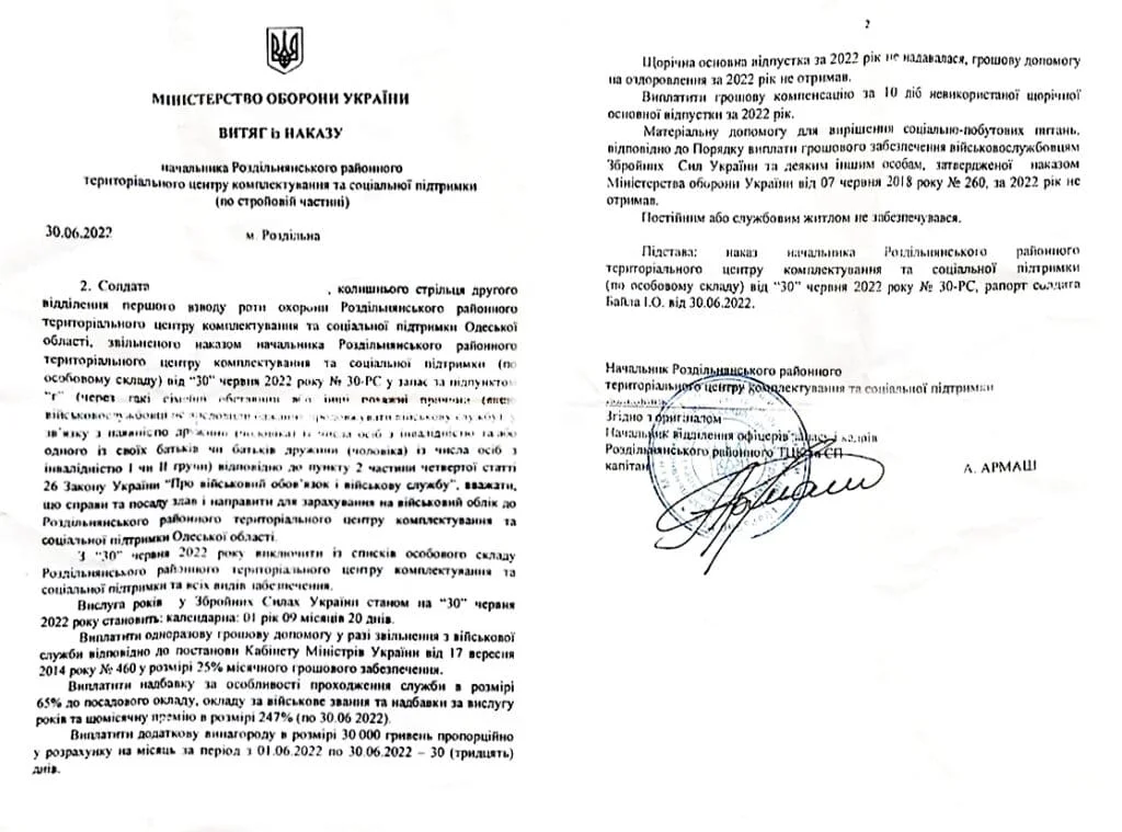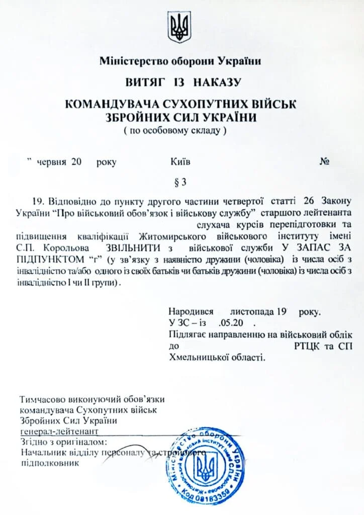 увольнение со службы в ВСУ,